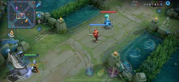 三指操作讲解:左手大拇指操作方向轮盘,左手食指拖屏(操控小地图获取视野),右手操作技能轮盘,可配合卡视野技巧在敌人的视野盲区对敌人发起极限距离突进。